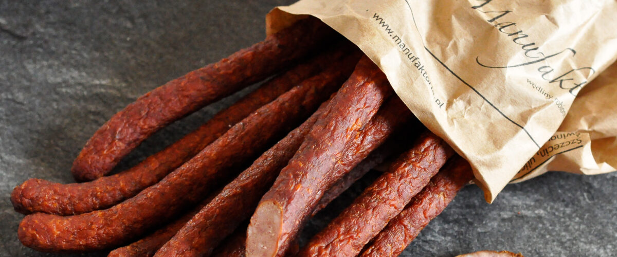 Wyrabiane w naturalnej osłonce z jelita baraniego, poddawane są długiemu wędzeniu prawdziwym drewnem, a następnie starannie podsuszane. Dzięki temu stają się suche, delikatne i niezwykle aromatyczne — doskonałe jako przystawka na stole, szybka przekąska w dłoni czy dodatek do wyjazdowego prowiantu.