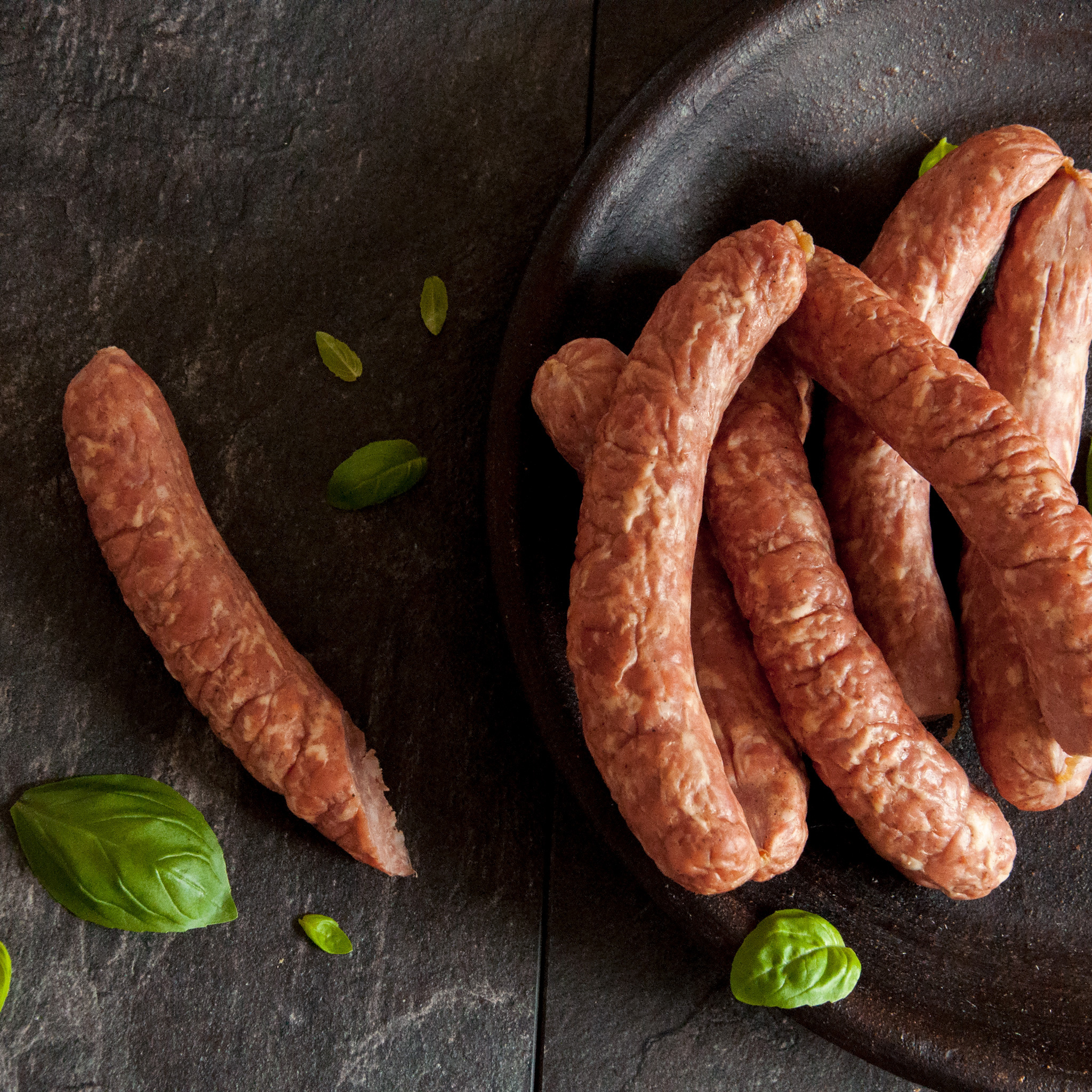 Kiełbasa pieczona powstaje z połączenia trzech doskonałych gatunków mięs wieprzowo‑wołowych, które nadają jej pełny, wyrazisty charakter. To propozycja dla osób ceniących intensywniejszy smak — ostrzejsza, aromatyczna, z wyczuwalną kompozycją czosnku i pieprzu.
