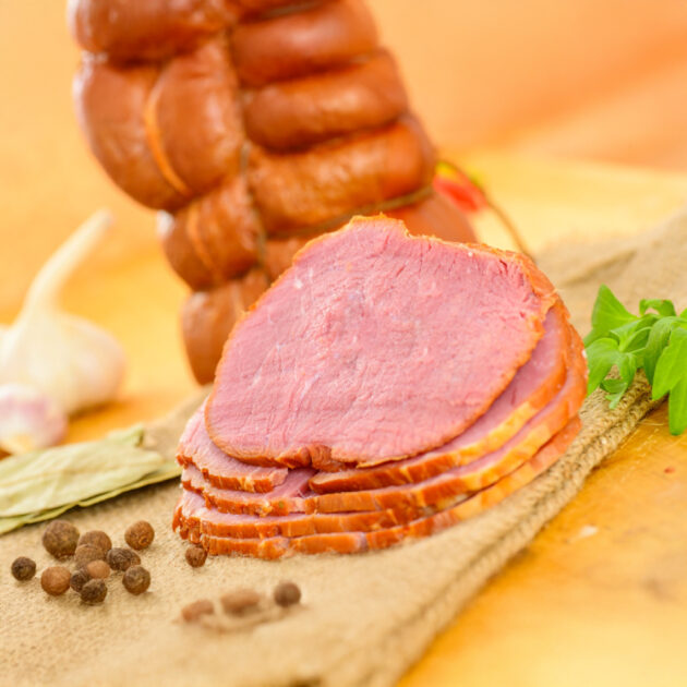 - Wędzenie „na różowo”: Nasz sekret tkwi w temperaturze i czasie. Rostbef dojrzewa w dymie olchowym tak długo, by nabrać dymnego aromatu, ale pozostać w środku kruchym i delikatnym.